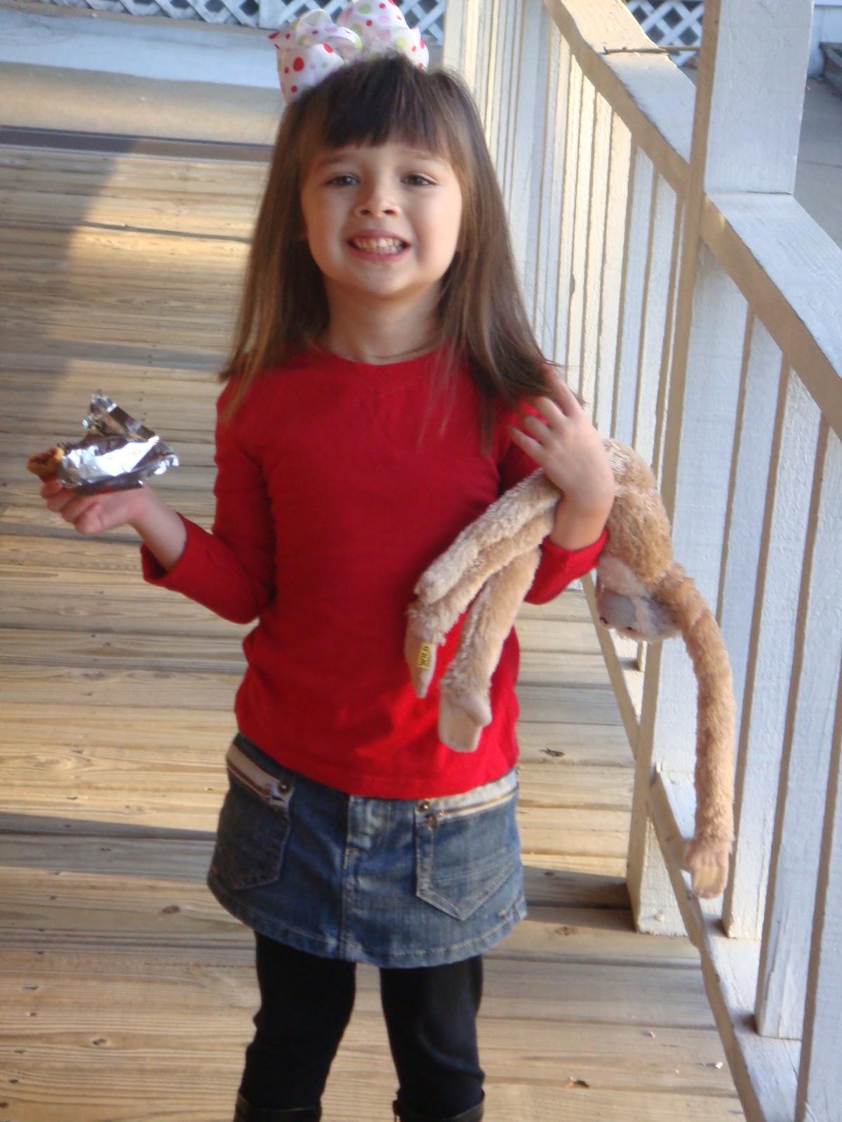 This is a picture of me dropping Chloe off at school Friday...it will be a while before I resume my dropping off duties so I wanted to mark the occasion! It was also Share Day...that is why she has a Monkey!